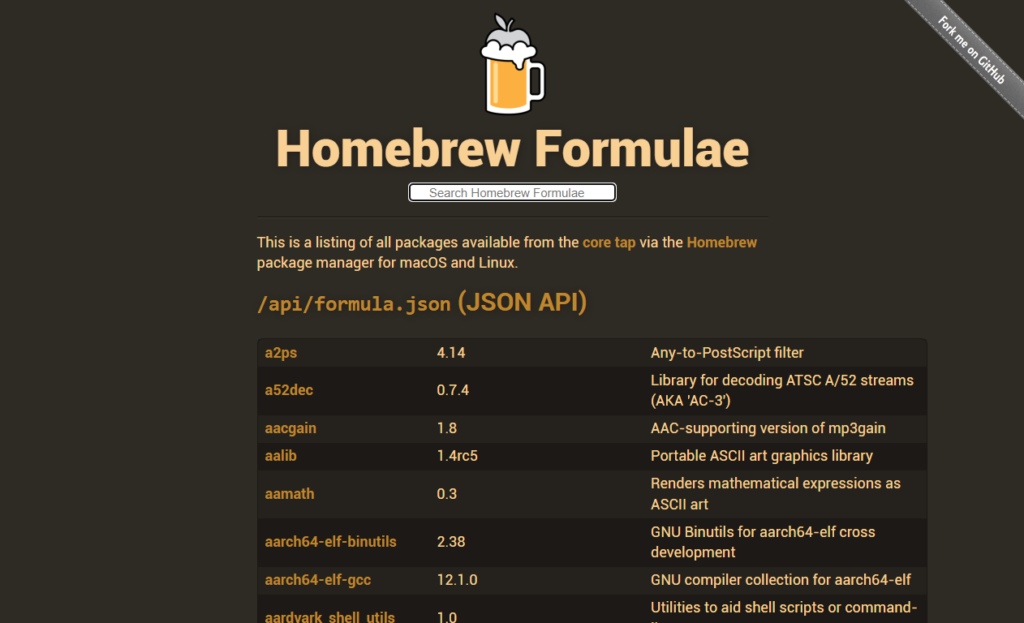 - Starting with the Formulae Core API, write a script that collects the names of the packages available and stores the names into a list.